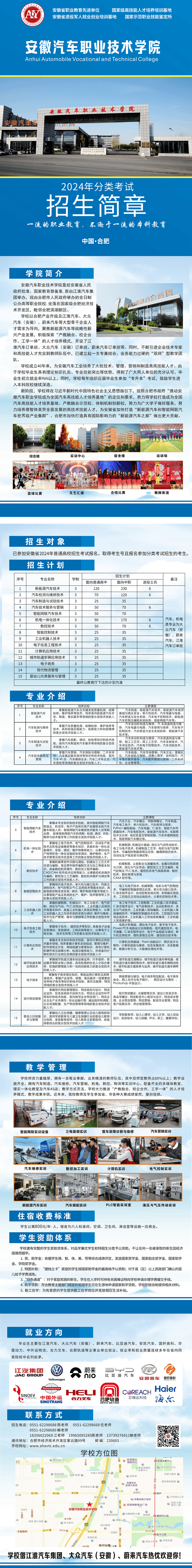 安徽汽车职业技术学院2024年分类考试招生简章